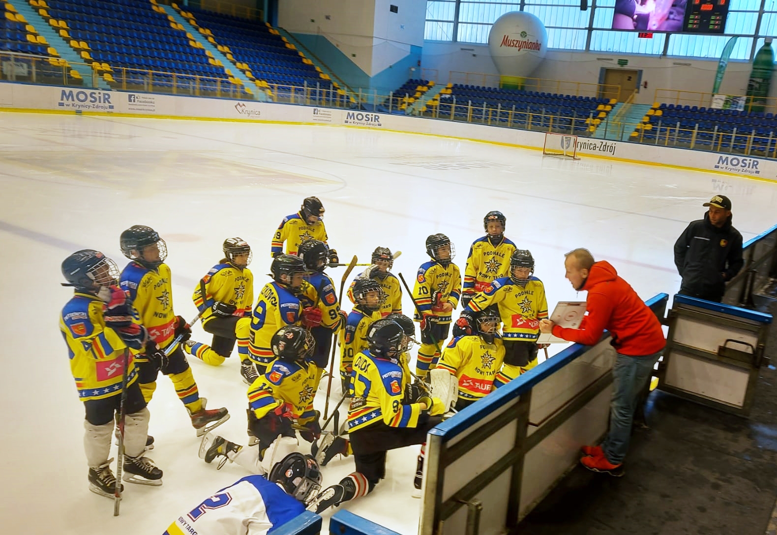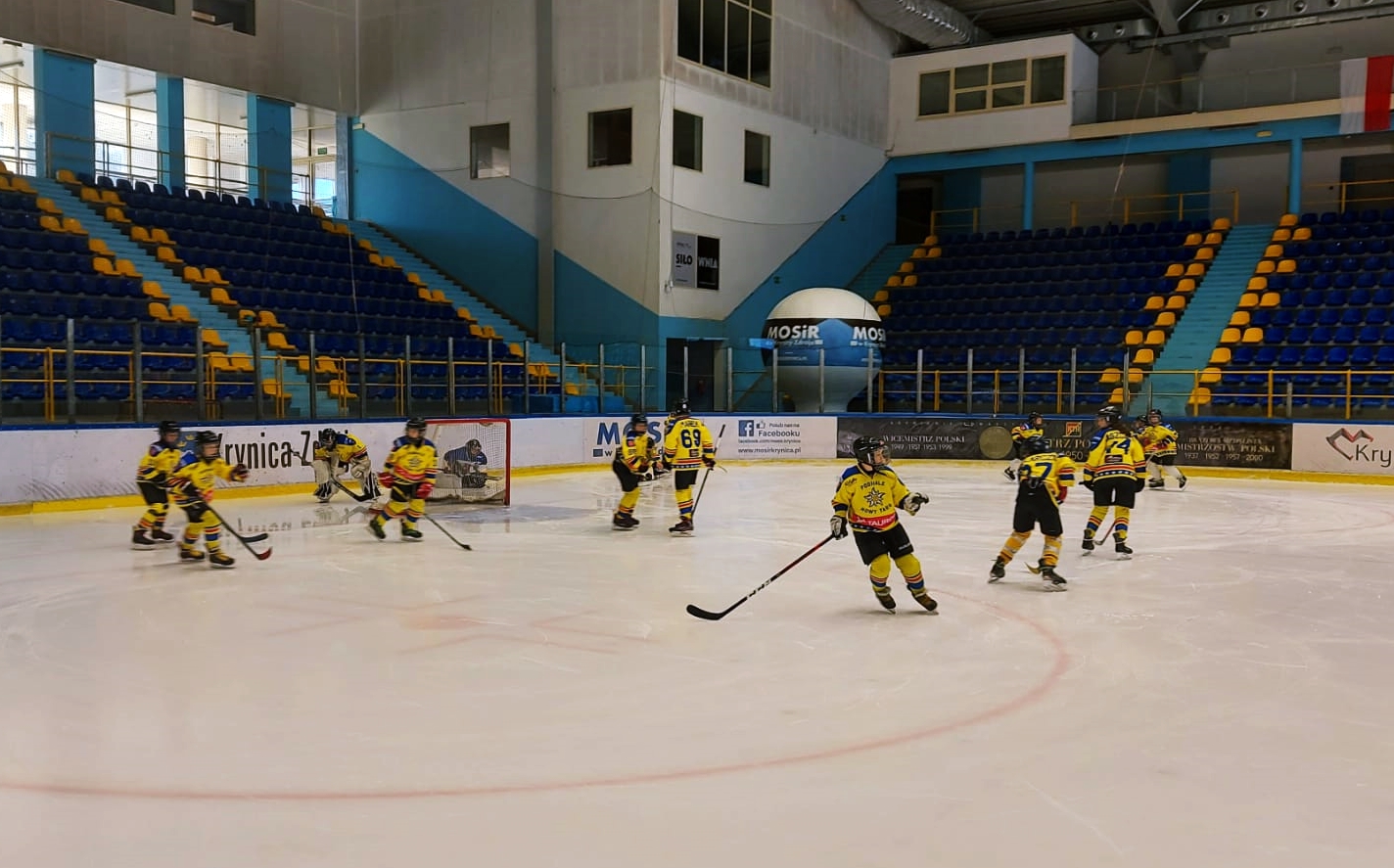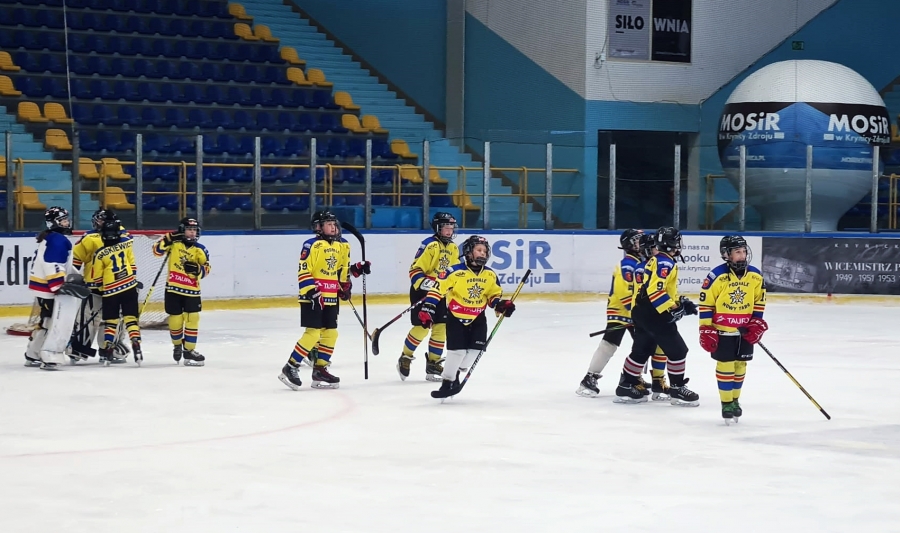 Przed nami był jednak decydujący mecz tego turnieju z KTH Krynicą. Emocje sięgały zenitu i nerwowa atmosfera towarzyszyła nam już od zbiórki na lodowisku. Jednak Trener, Ryszard Kaczmarczyk, znakomicie rozładował napięcie i odpowiednio zmotywował swoich zawodników. Przez cały mecz widać było wyraźną przewagę zawodników z Podhala, przypieczętowaną wygraną Szarotek 7:4. Spotkanie było bardzo emocjonujące!