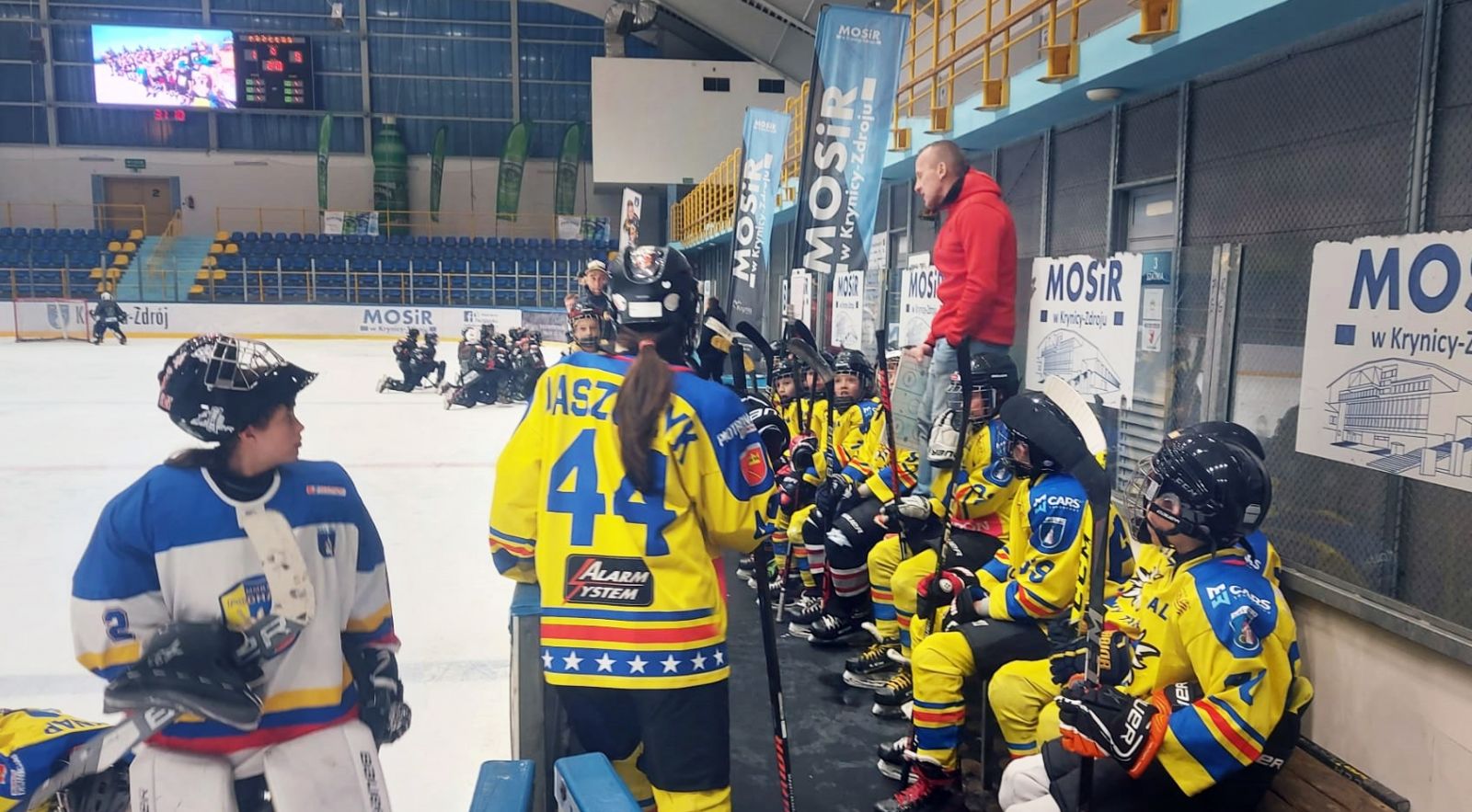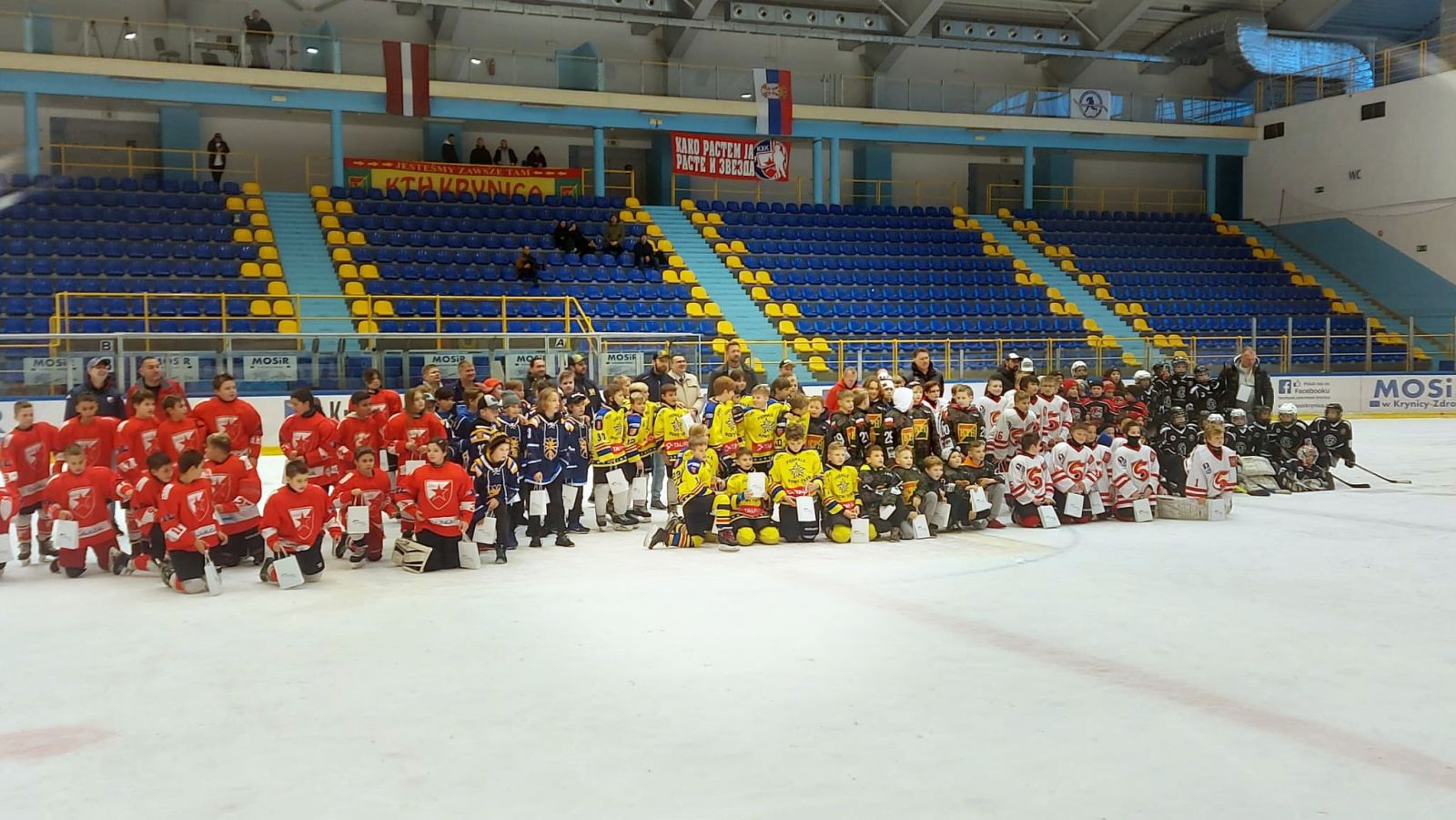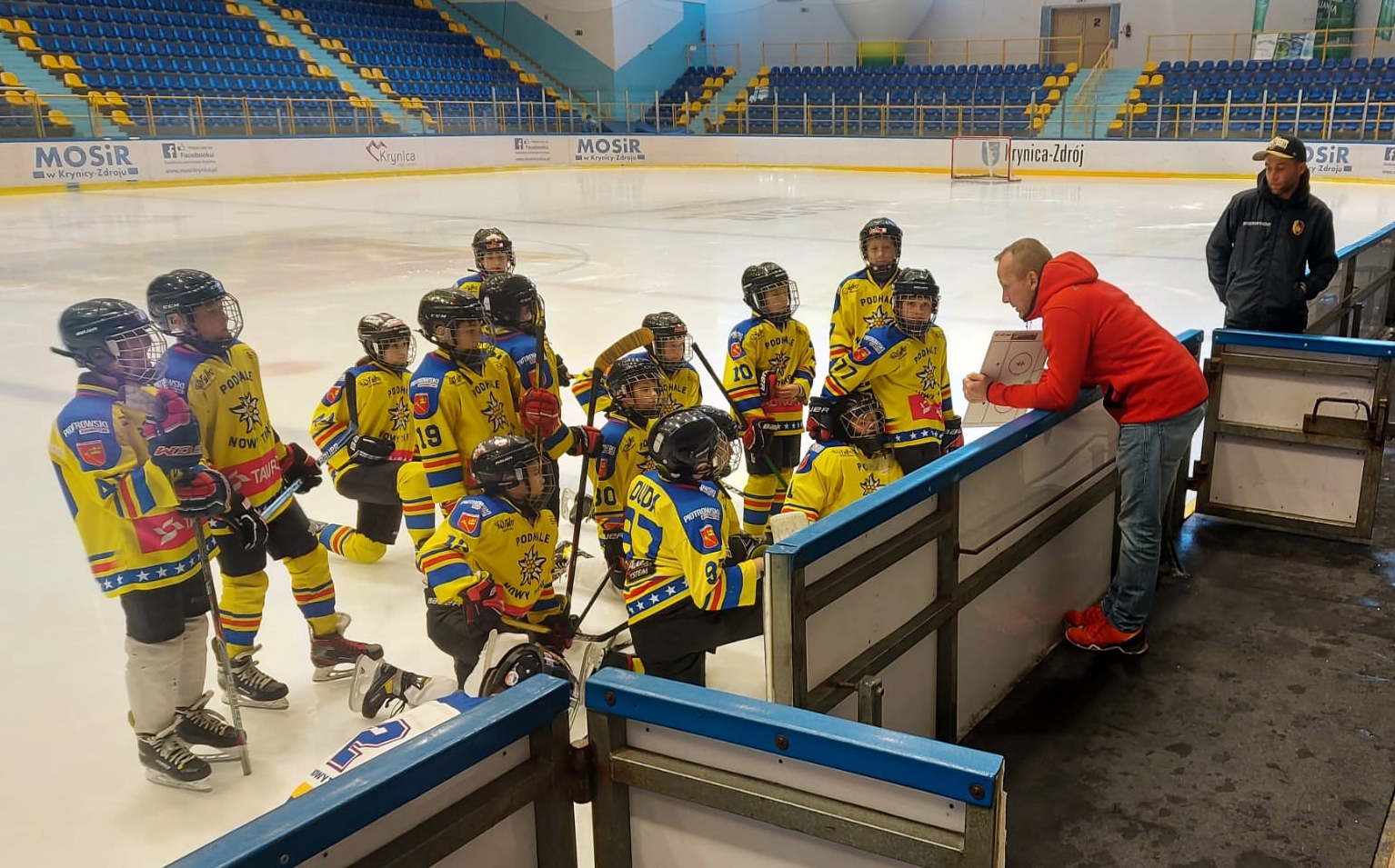 Przed nami był jednak decydujący mecz tego turnieju z KTH Krynicą. Emocje sięgały zenitu i nerwowa atmosfera towarzyszyła nam już od zbiórki na lodowisku. Jednak Trener, Ryszard Kaczmarczyk, znakomicie rozładował napięcie i odpowiednio zmotywował swoich zawodników. Przez cały mecz widać było wyraźną przewagę zawodników z Podhala, przypieczętowaną wygraną Szarotek 7:4. Spotkanie było bardzo emocjonujące!