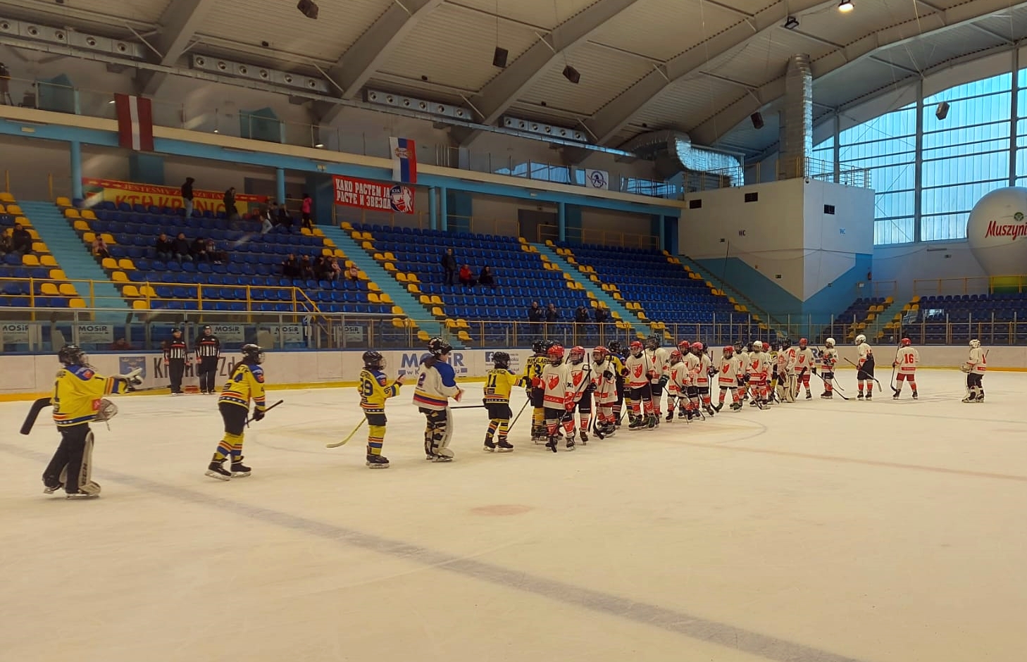 Drugie, bardzo wymagające, z drużyną z Rygi która wystąpiła w turnieju gościnnie. W tym meczu nasi zawodnicy mogli zobaczyć, jak wygląda prawdziwy hokej. Hokeiści z Łotwy z rocznika 2008-09 rozegrali przepiękny mecz - perfekcyjne podania, znakomicie ułożone akcje, nic nie było zostawione przypadkowi. Przegraliśmy to spotkanie 16:3, wynik nie odzwierciedla jednak zaangażowania z jakim do pojedynku stanęli gracze MMKS-u Podhale Nowy Targ. Zbrakło doświadczenia, ale waleczności nie można im było odmówić. Ten mecz nie wchodził do ogólnej punktacji turnieju.
