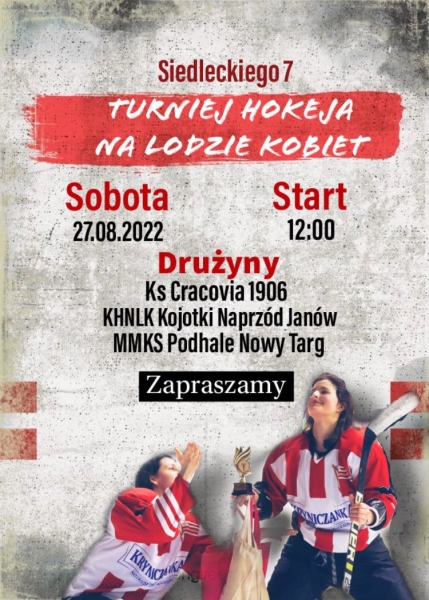 W dniu 27 sierpnia tj. sobota o godz. 11.00 rozpocznie się pierwszy w sezonie turniej kobiecy z udziałem trzech drużyn: MMKS Podhale Nowy Targ, KS Cracovia 1906 oraz KHNLK Kojotki Naprzód Janów.Plan imprezy przedstawia się następująco: