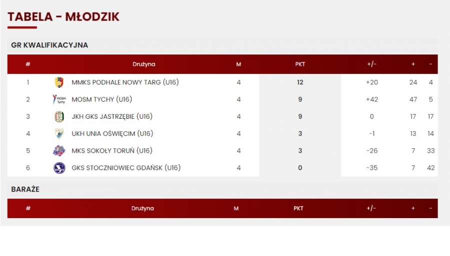 Tabela i wyniki ogólnopolskie https://polskihokej.eu/standings/70/mlodzik