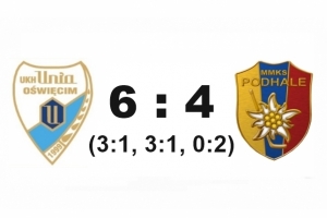 Grupa Młodzika MMKS Podhale Nowy Targ już po meczu z UKH Unią Oświęcim. Grając na oświęcimskim lodzie, gracze Podhala dali z siebie wszystko. Choć zwycięstwo przypadło przeciwnikowi, to MMKS Podhale Nowy Targ pokazało, że także potrafi tworzyć skuteczne akcje i zdobywać bramki.