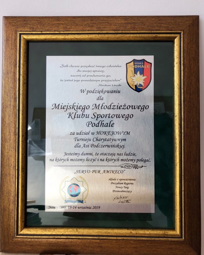 W dniach 13-14 września 2019 r. w Miejskiej Hali Lodowej w Nowym Targu odbył się Turniej Charytatywny dla Asi Podczerwińskiej o Puchar Przewodniczącego Regionu IPA Nowy Targ.
