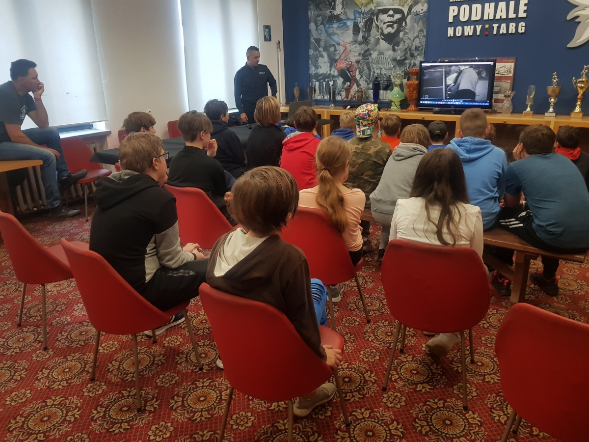 W dniu 03.10.2019 z inicjatywy trenera Rafała Sroki, kierownika Marcina Kowalskiego i Tomasza Węglarczyka z klubu hokejowego MMKS Podhale Nowy Targ, grupa hokejowa Żaka Starszego odbyła spotkanie z funkcjonariuszem policji asp. sztabowym Rafałem Skrobot z Zespołu do Spraw Nieletnich i Patologii Wydział Prewencji Komendy Powiatowej Policji w Nowym Targu.