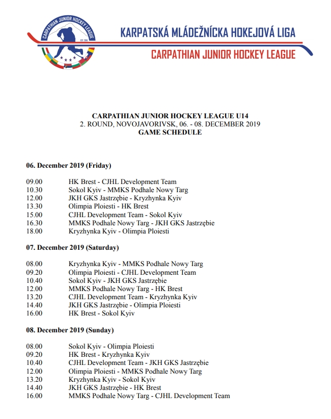 Druga runda w ramach rozgrywek kategorii U14 odbędzie na Ukrainie w Novojavorivsku. Rozgrywki turniejowe potrwają od piątku 6 grudnia do niedzieli 8 grudnia.W pierwszym meczu tego wyjazdu nasza drużyna spotka się z zespołem Sokol Kyiv, a następnie z rodakami, mianowicie z drużyną JKH GKS Jastrzębie.