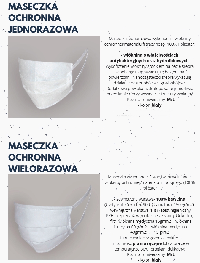 W ofercie mamy dwa rodzaje maseczek:jednorazowe w cenie 5 zł