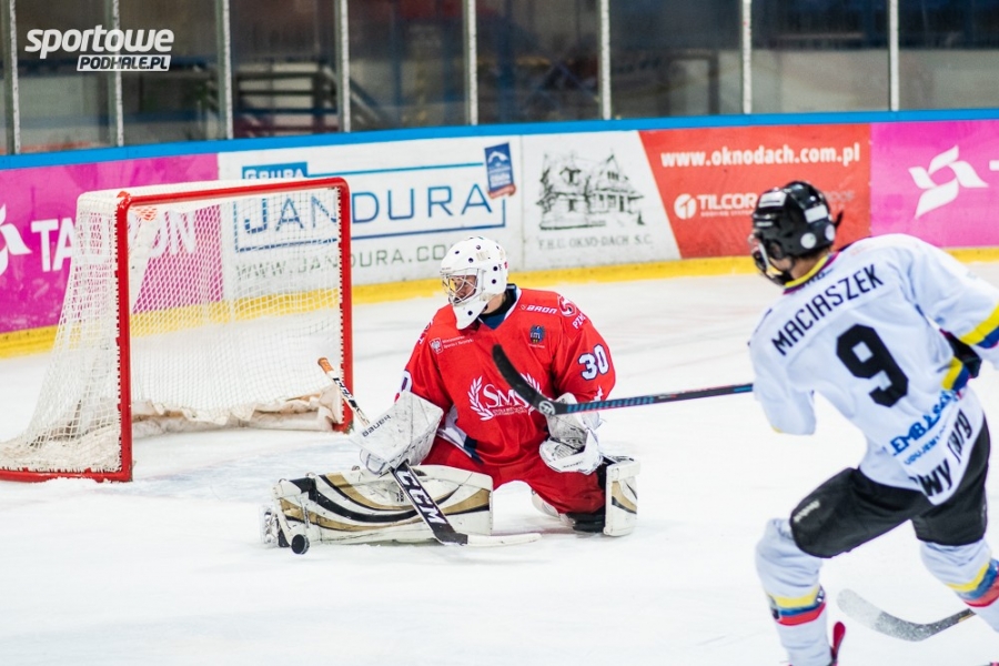 Drużyna Jacka Szopińskiego mecz zaczęła ospale i pozwoliła rywalom w przeciągu 16 minut na zdobycie dwóch bramek. W 18 minucie zareagował Jakub Malasiński i zmienił wynik na 1:2.Od tego momentu przez tercję drugą i trzecią gracze Podhala punktowali dokładnie tyle samo razy, co rywale - dokładnie 3. Różnica jednej bramki z tercji pierwszej okazała się nie do odrobienia i zespół musiał pogodzić się z wynikiem 4:5.
