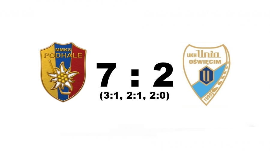 Rozgrywany na nowotarskim lodzie mecz stanowił 2 kolejkę pierwszej rundy ligi MOZHL. Przez pierwsze 10 minut spotkania obie drużyny poznawały swoją grę. W końcu bezbramkową ciszę przerwał Piotr Warzycki. Na bramkę gracza Podhala po 5 minutach odpowiedział Adrian Ziober z Unii, ale po jego akcji do gry szybko powróciły "Szarotki". Patryk Zubek a po nim Adrian Piątek podwyższyli wynik tercji pierwszej na 3:1.