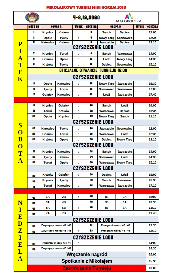 Poniżej prezentujemy planowany harmonogram rozgrywek: