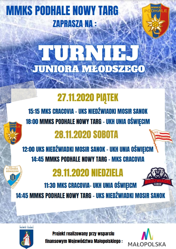 Już w piątek 27 listopada odbędzie się pierwszy mecz w ramach rozgrywek turniejowych Juniora Młodszego. W wydarzeniu poza MMKS Podhale Nowy Targ wezmą udział także drużyny z Krakowa, Sanoka i Oświęcimia.