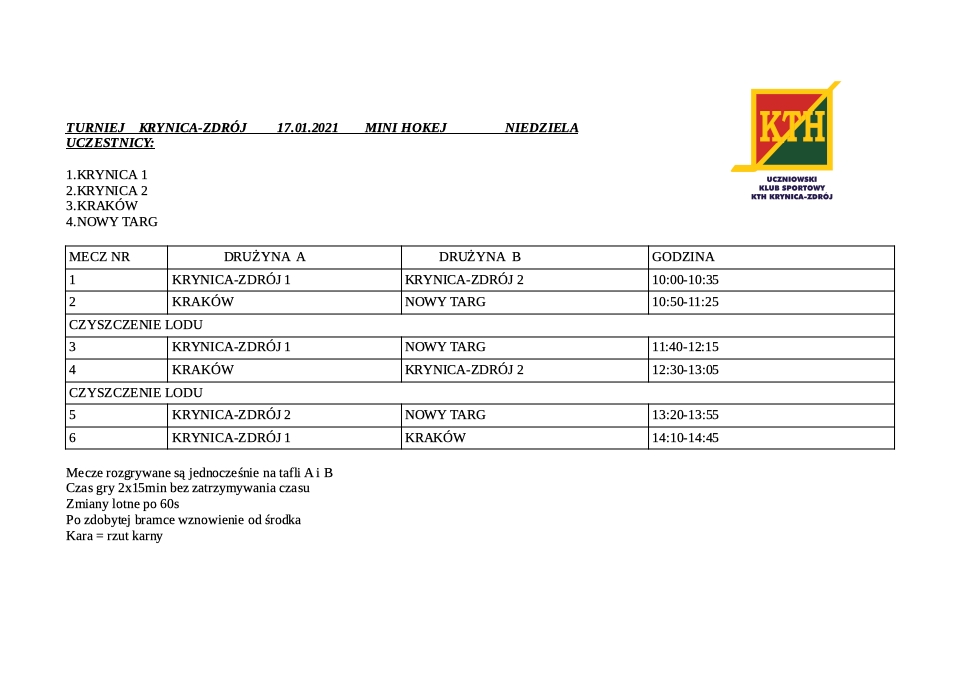 W wydarzeniu poza Podhalem wezmą udział zespoły z Krynicy i Krakowa.Poniżej harmonogram rozgrywek: