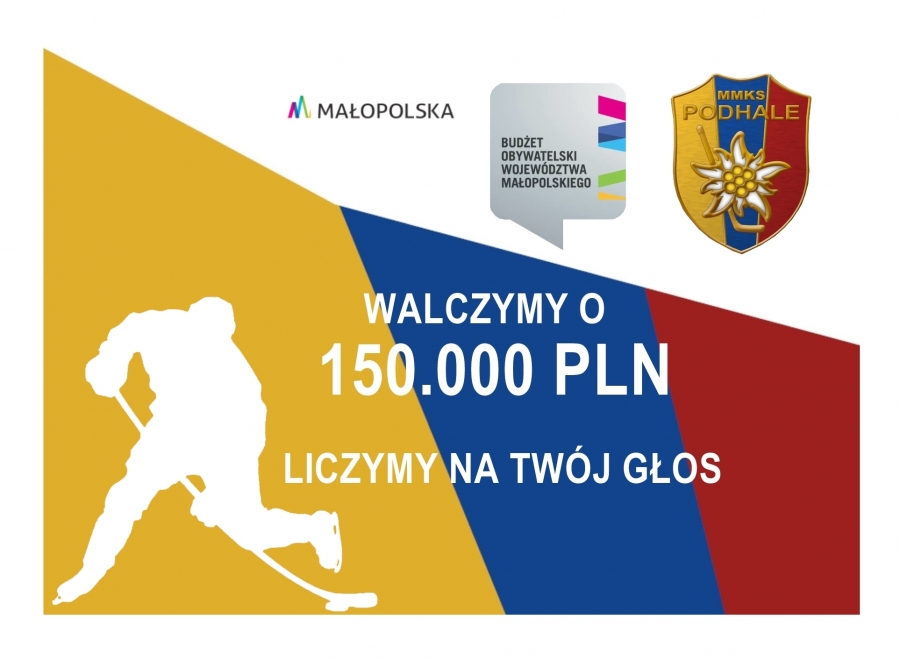 Głosowanie w ramach V edycji Budżetu Obywatelskiego Województwa Małopolskiego wystartowało. Podobnie jak podczas edycji IV z roku 2019, wśród zgłoszonych zadań, znalazło się także to opracowane przez MMKS Podhale Nowy Targ. "Sport przez cały rok - hokej na lodzie i unihokej dla dzieci i młodzieży" - bo o nim mowa - to walka o solidne wsparcie, bo aż o 150.000 PLN. Konkurencja jest jednak mocna. W tegorocznym zadaniu udział biorą aż 234 zadania, dlatego Twój głos się liczy!
