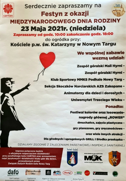 Serdecznie zapraszamy wszystkich na festyn z okazji Międzynarodowego Dnia Rodziny 23 Maj 2021 Niedziela.
