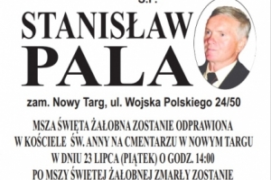 Z głębokim żalem przekazujemy smutną informację. W dniu 21 lipca 2021 r. zmarł Stanisław Pala .